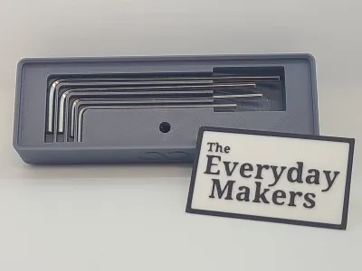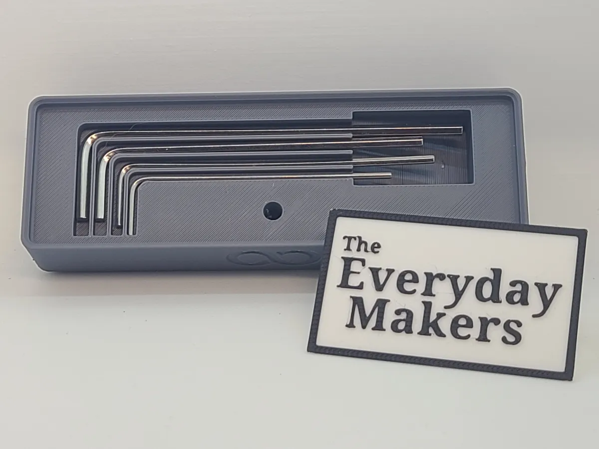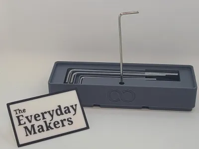 This 3u 3x1 Gridfinity bin holds the four allen wrenches that were included in the Elegoo Centauri Carbon tool kit that came with your printer. It holds them flush so they can be stacked on, and includes a finger recess so you push on the end of the wrenches and they'll pop up for easy removal. It also includes a hole for them so you can easily store them while in use.