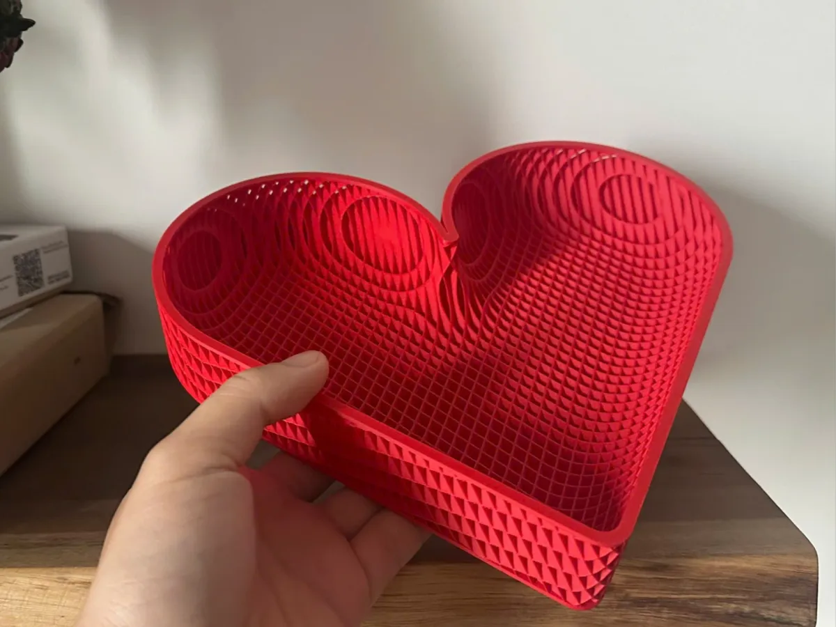 This heart-shaped tray organizer combines functionality with a decorative appeal, featuring a textured inner surface for added artistic value.