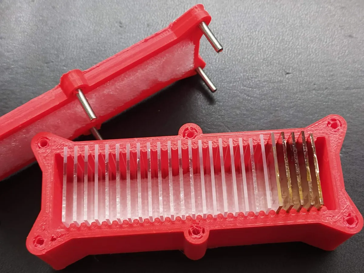 I designed this box for slide thirds (2525mm square slides, 25 slides) but you can also find the files for complete slides (75*25mm, 10 slides).