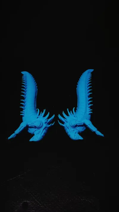 This is a masterpiece that seamlessly blends the unconventional morphology of insects with the cold, futuristic aesthetics of advanced weaponry, featuring a highly precise segmented structure, an aggressively designed form, and a powerful sense of dynamism.