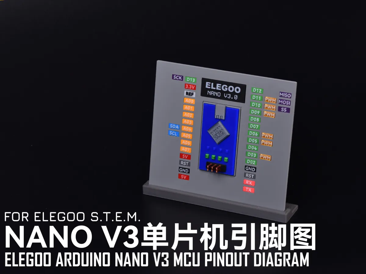This is a pinout model specifically designed for the ELEGOO microcontroller series, making it easier to understand the function of each pin when working with these MCUs.