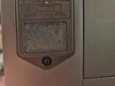 6. Unscrew the Power inlet and power switch assembly at the back of the printer and pull it out.