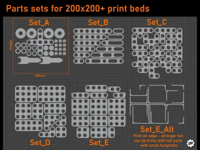 Check out the pictures and you will notice I have grouped the parts into sets (A to E) that can be printed on 200x200mm beds and I would recommend printing some, if not all, sets twice.