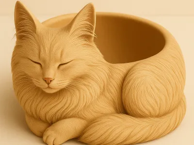 The realistic fur texture and gentle detailing make this piece both decorative and practical—ideal for cat lovers, cozy interiors, or whimsical 3D print collections.