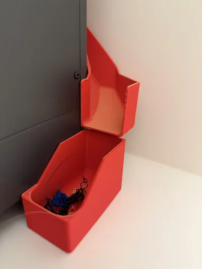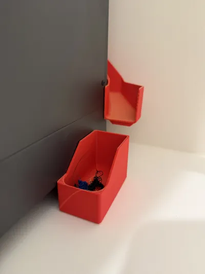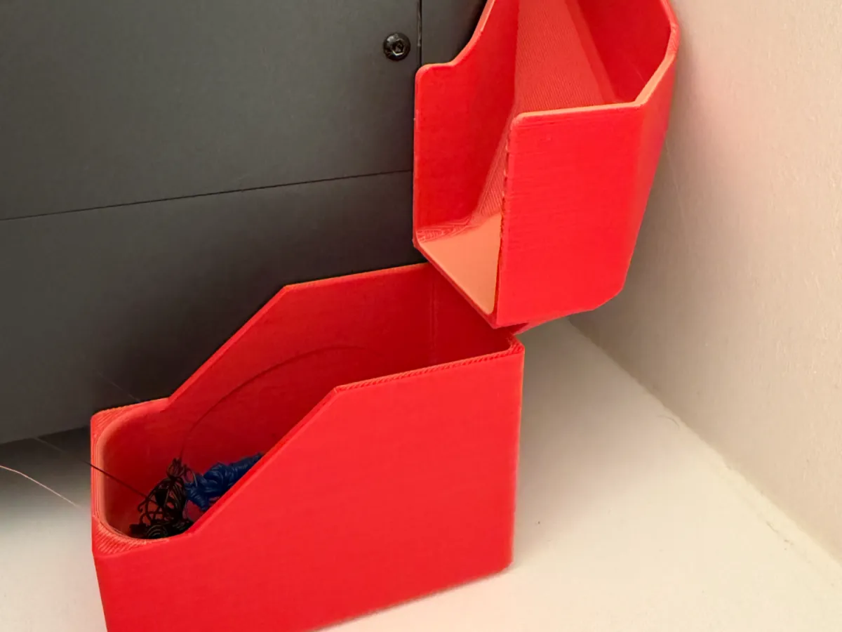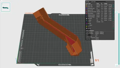 What This Is - A shallow, 30 mm deep, poop chute that is sloped all the to the exit and into the 40 mm wide bin on the right side. Uses existing screws to install and has access holes to use the included allen set that came in the Elegoo CC toolkit. Other versions stopped the slope too early and the purge would stall on the flat part of the slide.