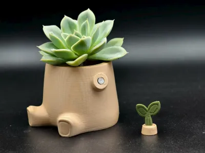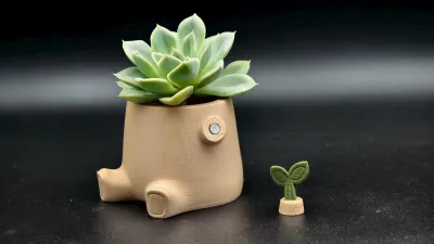 The stump-shaped magnetic succulent planter features a charming little hand and boasts a built‑in magnetic attachment. It uses 5×2.6 mm magnets—though you can also use the official TechZhu 4×2 mm magnets with just a bit of adhesive. You can easily customize the secondary components to accommodate magnets of your preferred size, or even scale up the design to create a stylish pen holder.