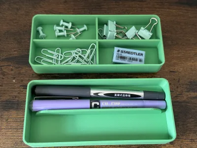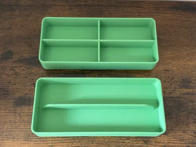 Two inserts, one for pens/pencils and one for bits (e.g. erasers, paper clips, etc)