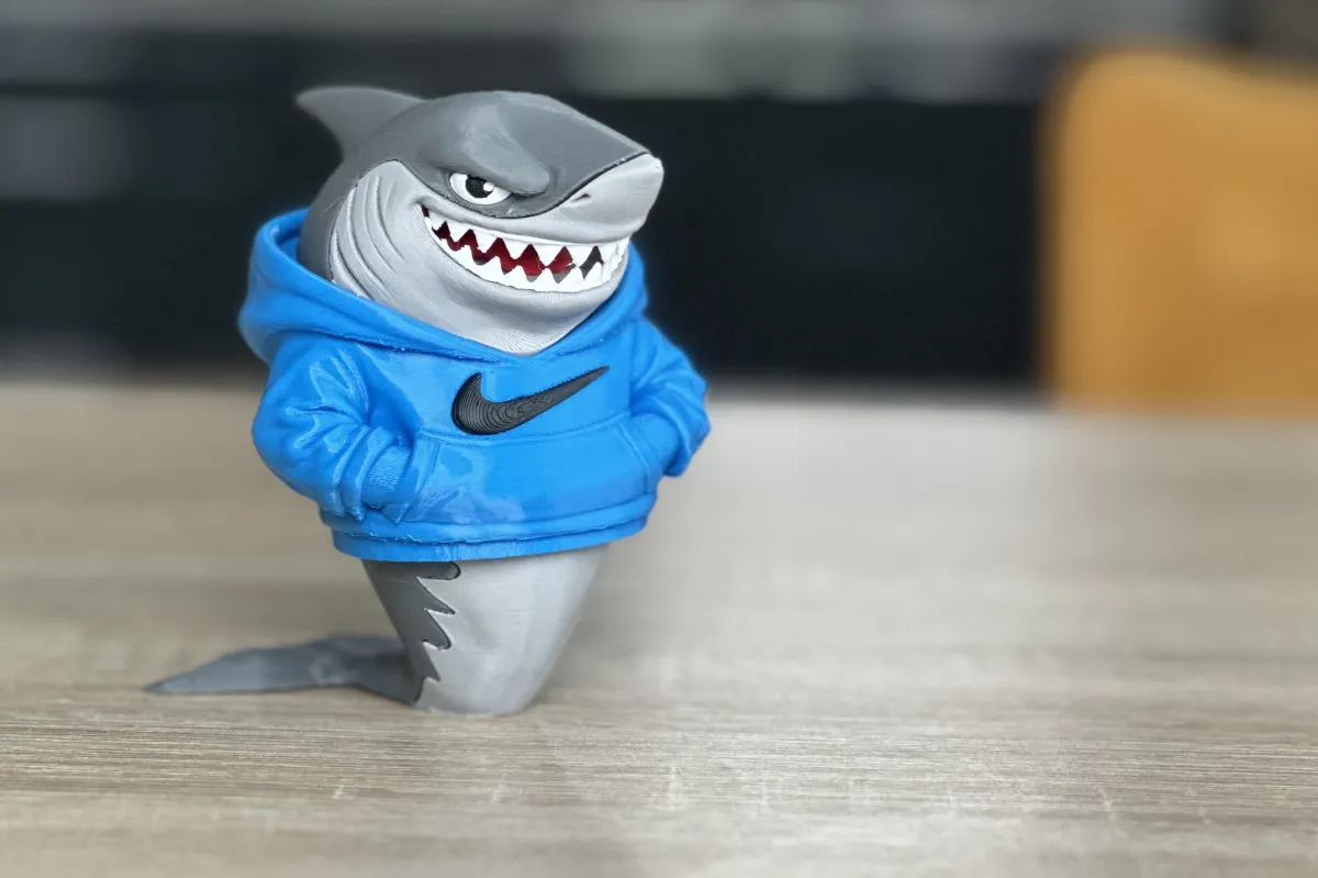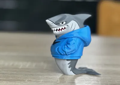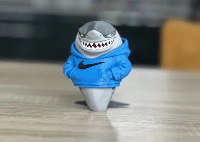 Hi, I created a cool urban shark in nike hoodie, it consists of separately printed parts, they fit together beautifully, some parts need to be glued together. The height of the assembled figure is 120mm. The eyes need to be folded with tweezers, they are small parts. May it bring you a lot of joy. Enjoy it.