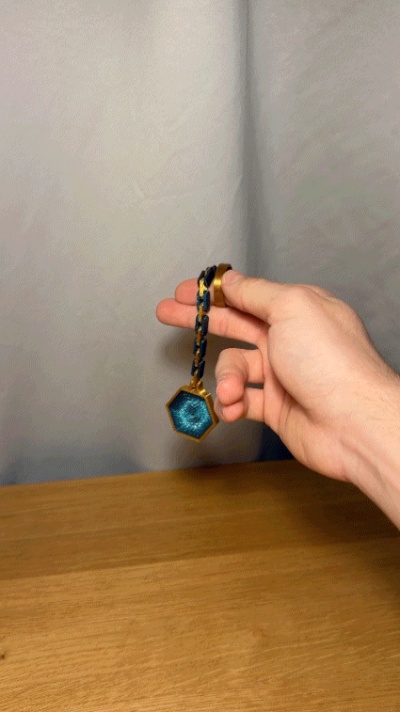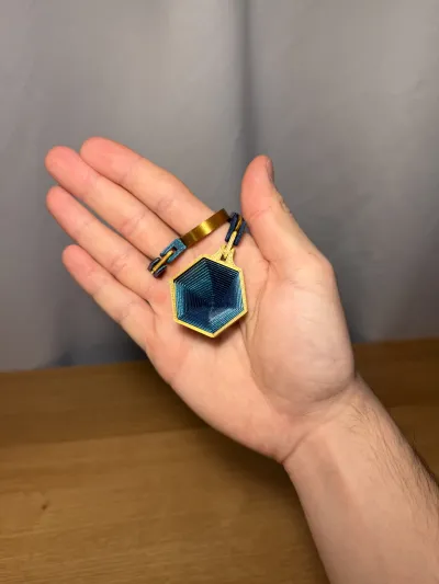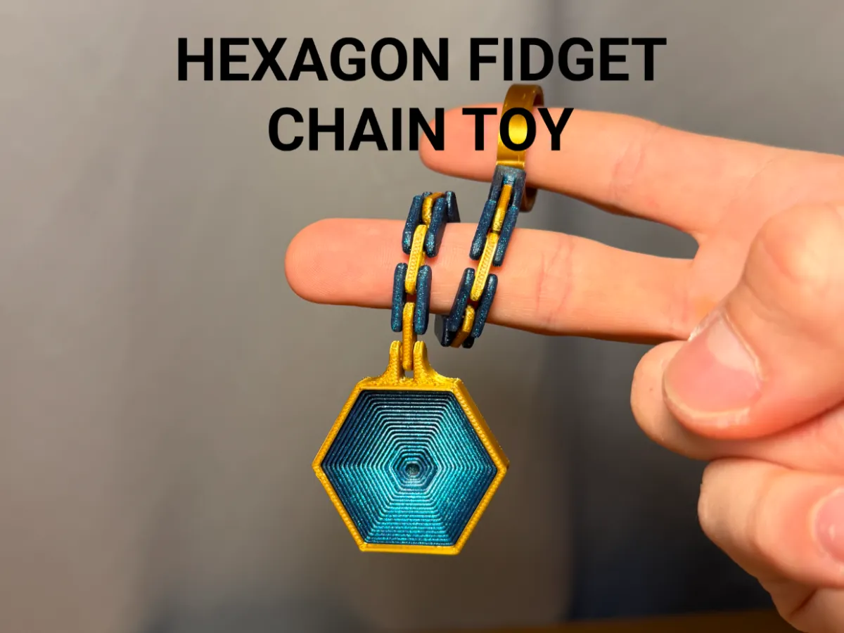 An upgraded version of the iconic Mini Hexagon Fidget Toy featuring an integrated chain and finger loop for extended interaction.