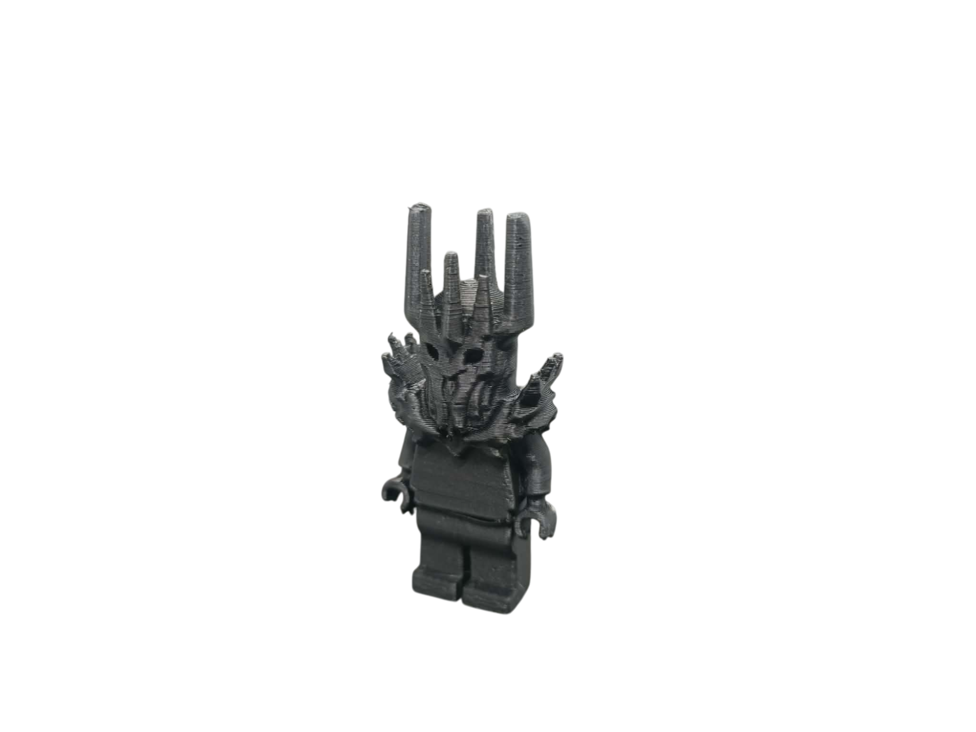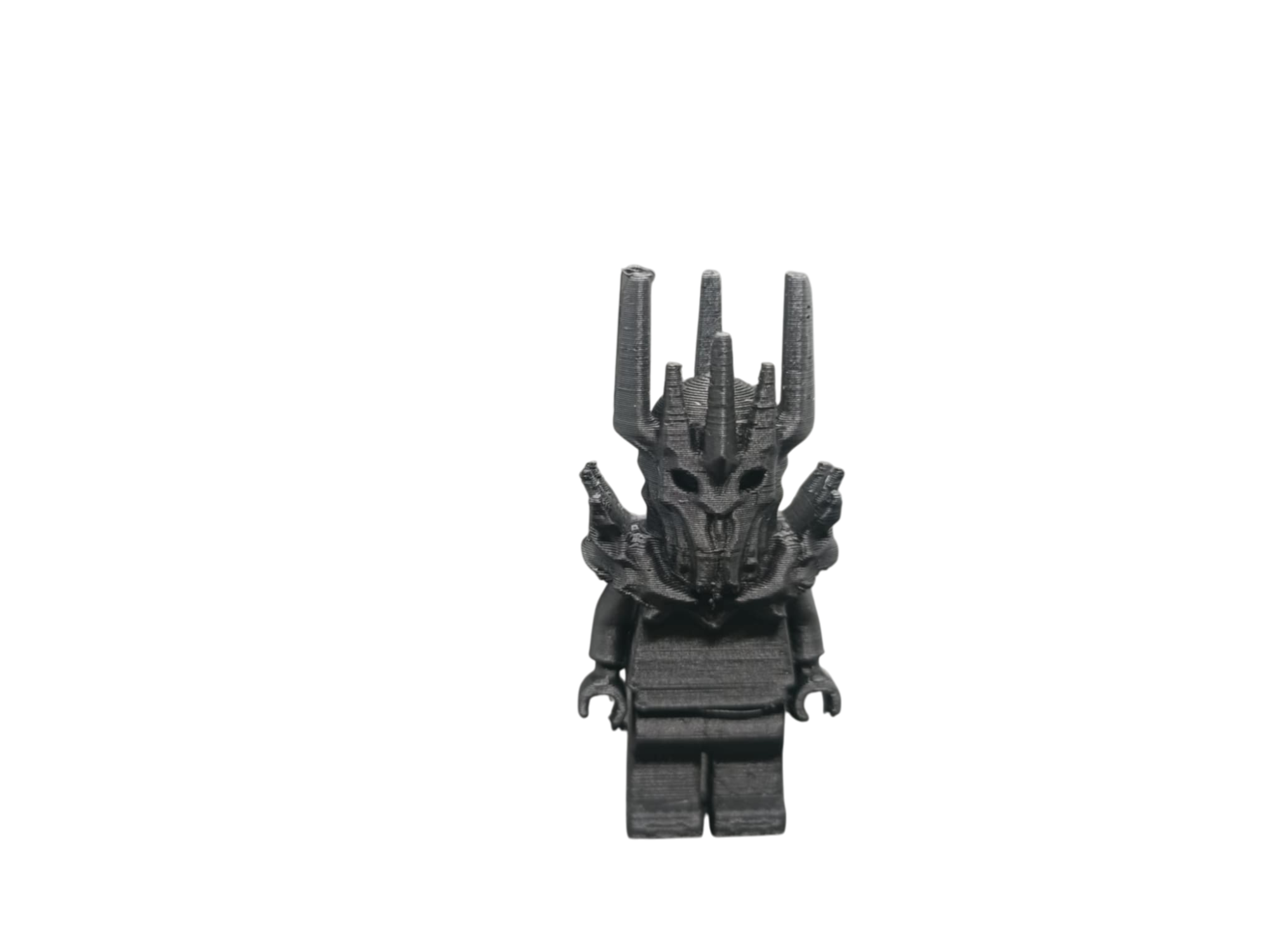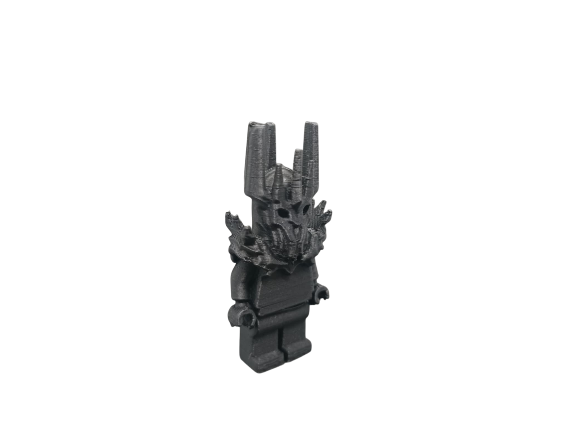 Elevate your collection with this unique 3D-printed statue, merging the iconic charm of a classic LEGOS-style minifigure with the dark, commanding presence of Sauron from The Lord of the Rings.