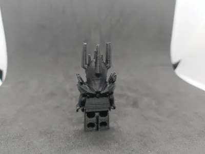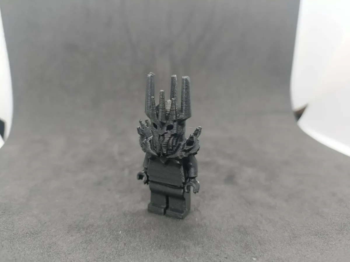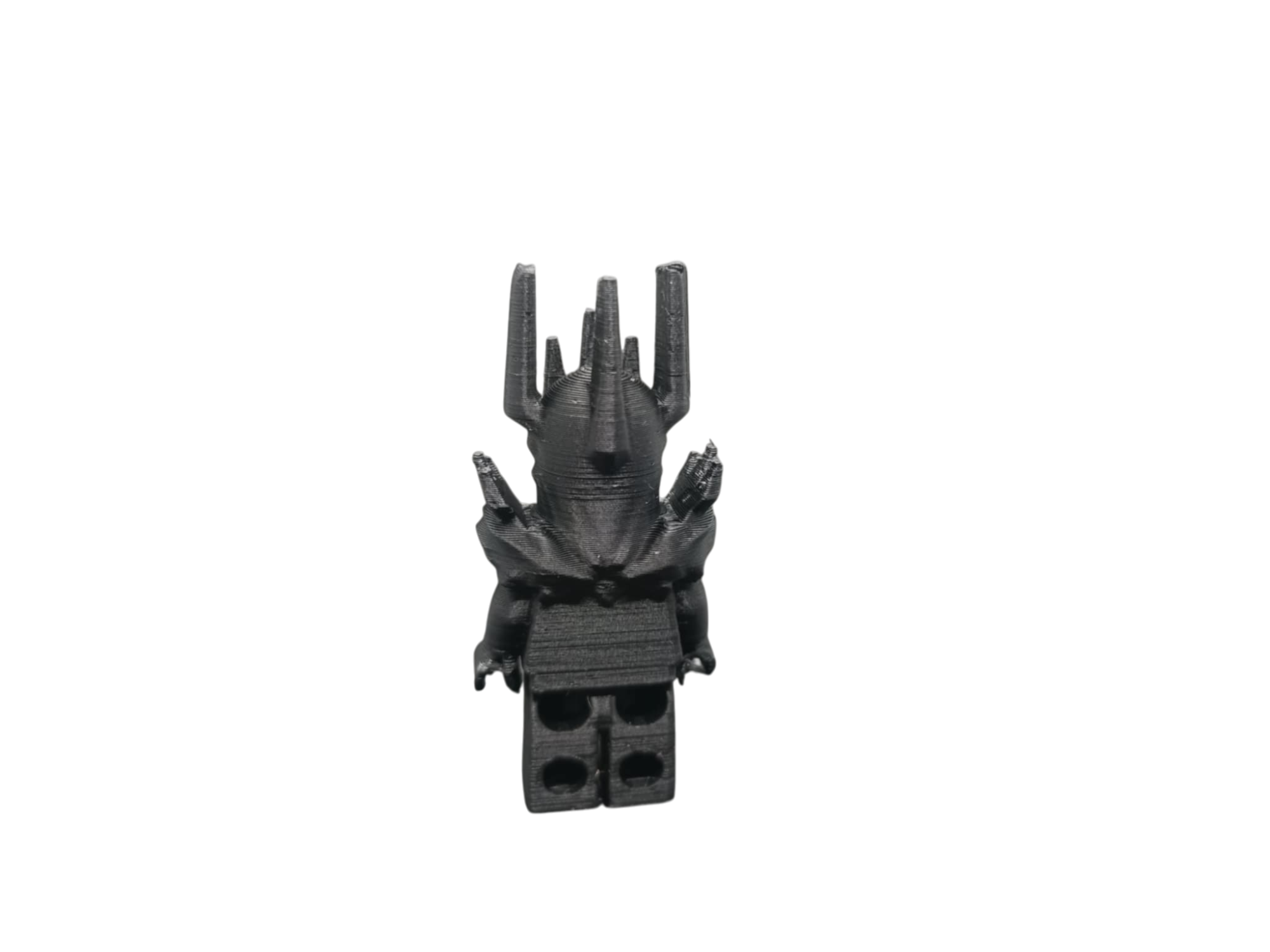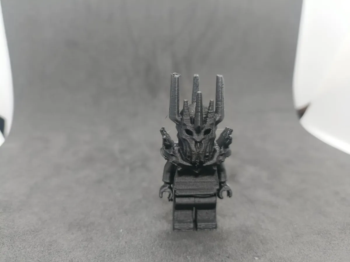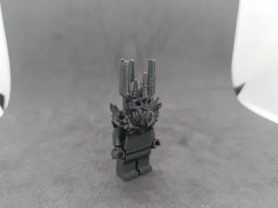 Elevate your collection with this unique 3D-printed statue, merging the iconic charm of a classic LEGOS-style minifigure with the dark, commanding presence of Sauron from The Lord of the Rings.