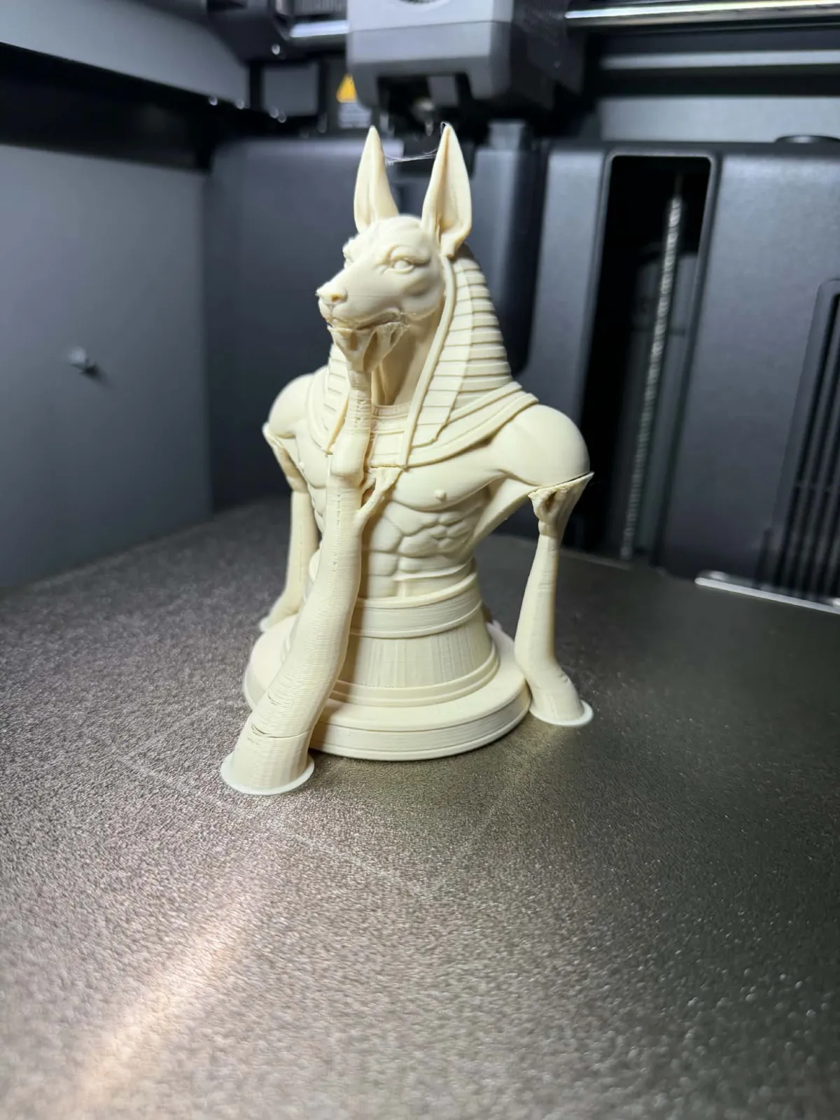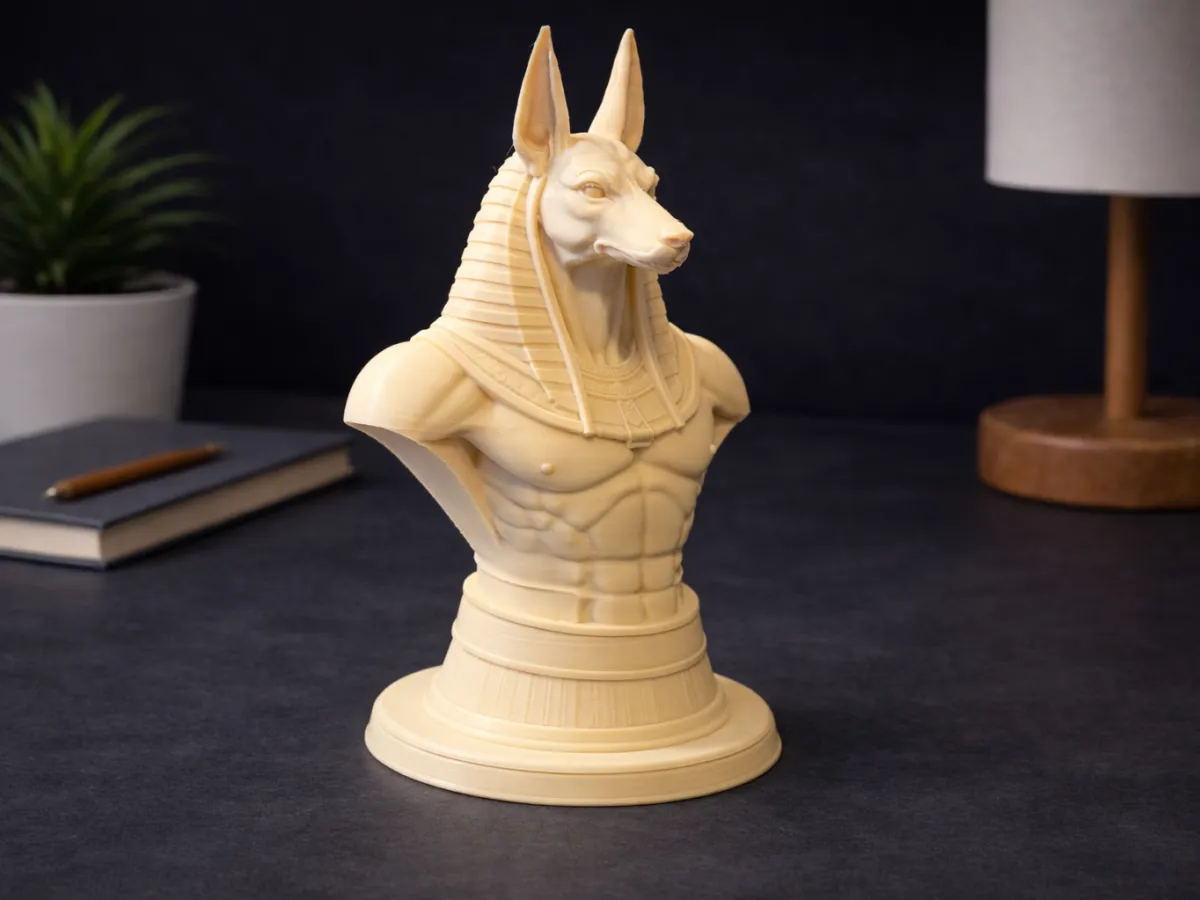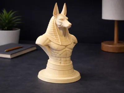 High-detail sculpture of the Egyptian god Anubis. Optimized for easy printing.