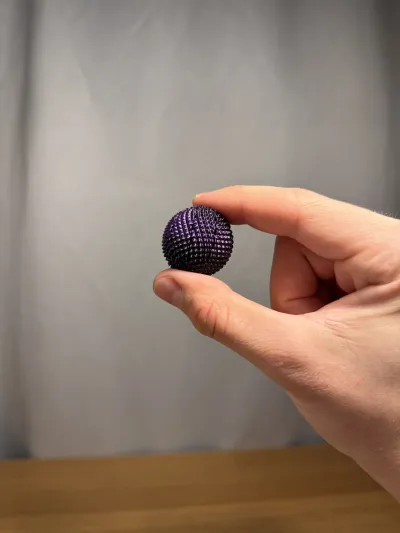 With a diameter of approximately 32 mm, it fits easily in the hand and works great as a small everyday fidget.