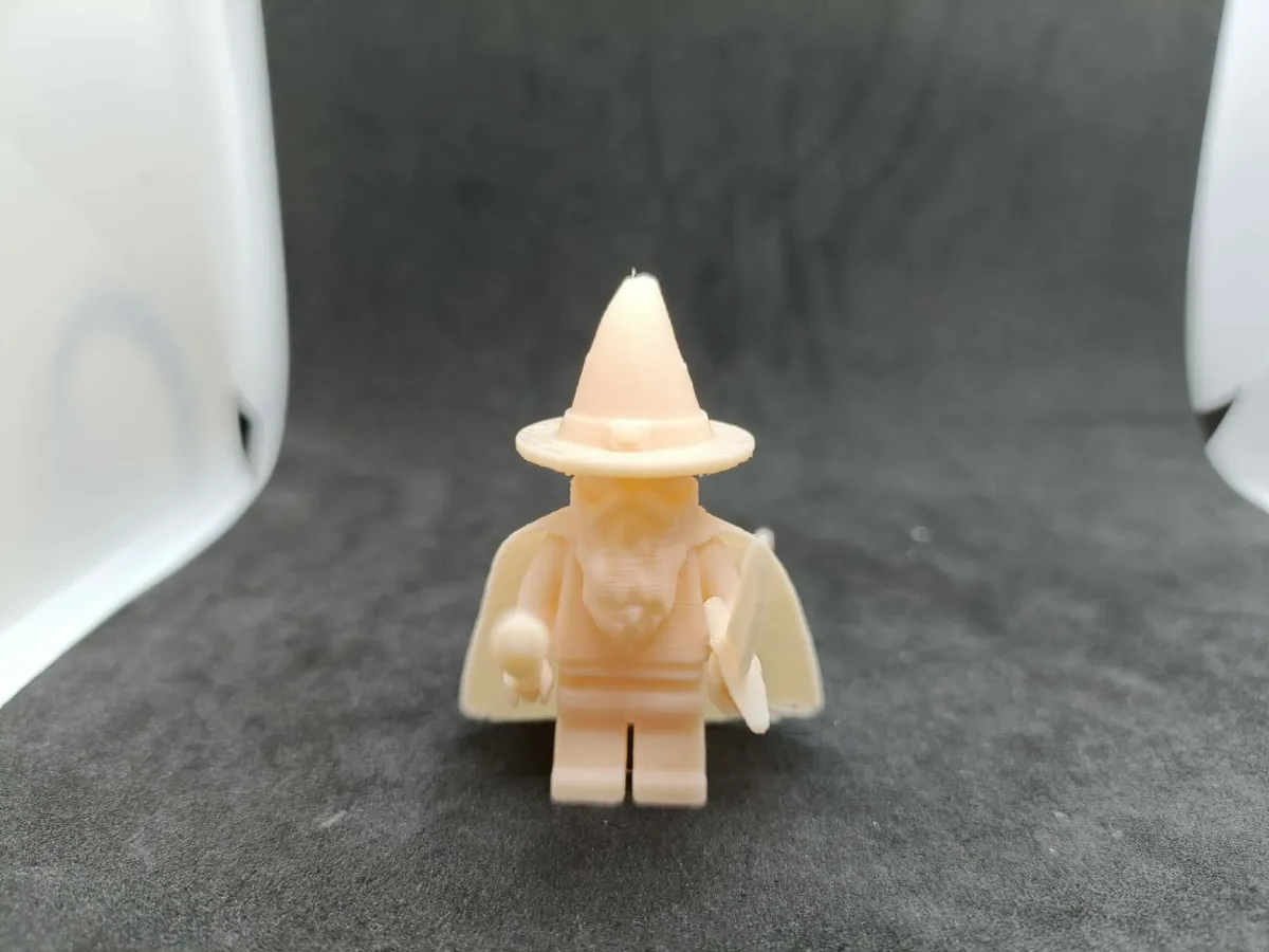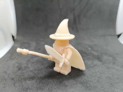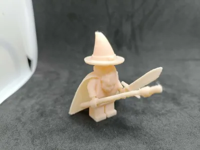 This 3D printable model is a high-quality fan art piece featuring the iconic wizard Gandalf, reimagined in a charming Legos-inspired aesthetic. The design blends the nostalgic blocky geometry of classic minifigures with the distinct, recognizable features of the Middle-earth legend.