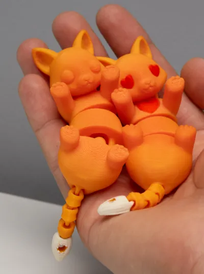 With their smooth shapes, compact articulated bodies, and relaxed pose on their backs, these little foxes are fun to print, hold, and play with.