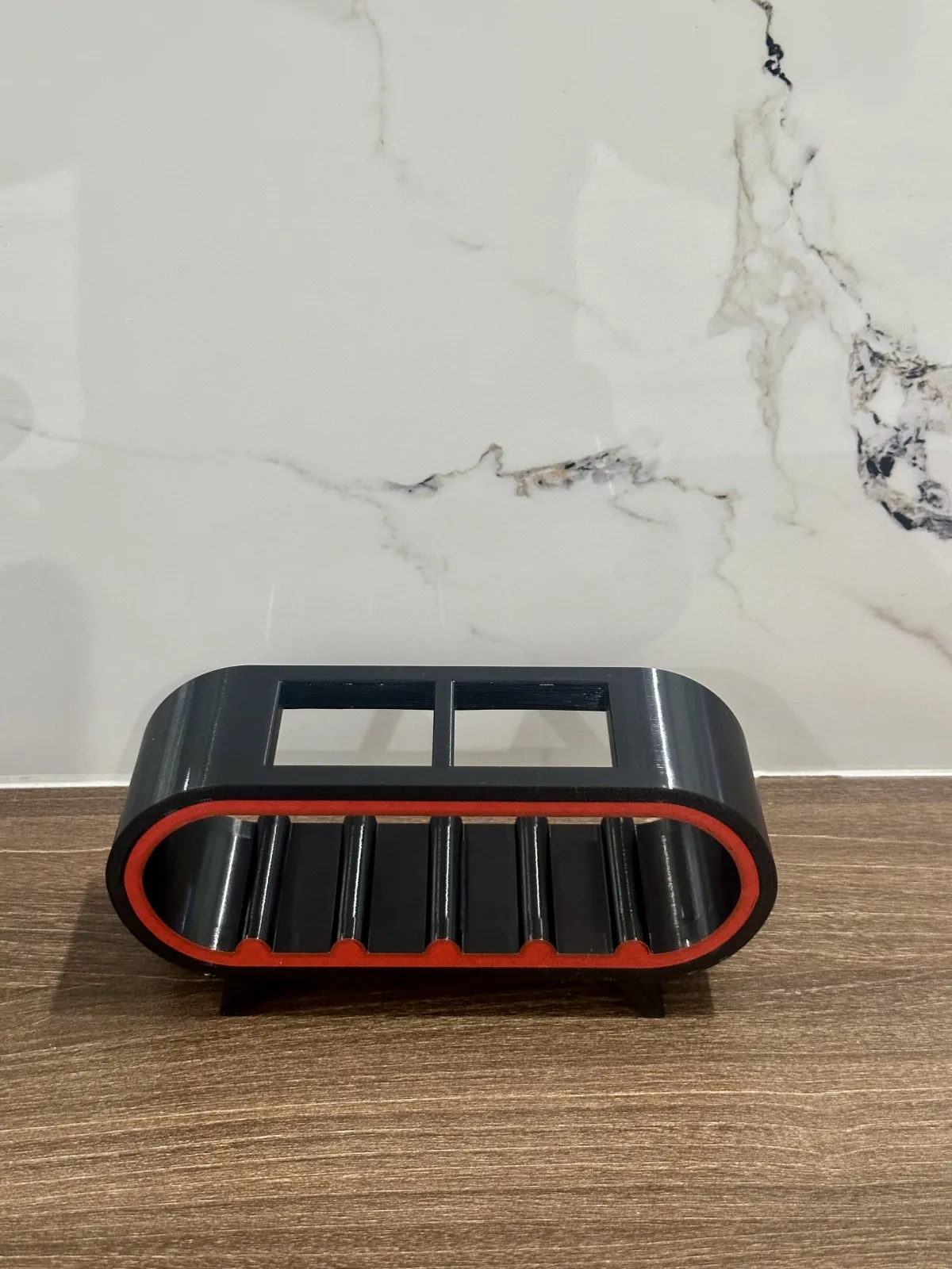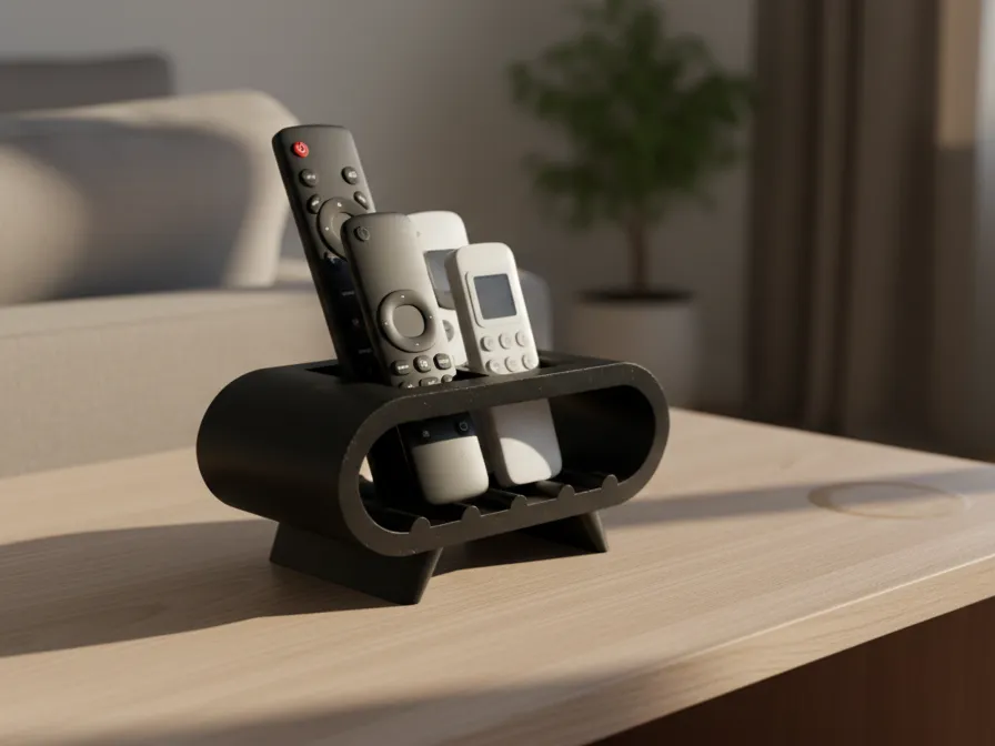 - A modern and compact remote control organizer designed to neatly store multiple remotes in one place. The angled slots provide easy visibility and quick access, while the sturdy base keeps everything stable on your table or shelf. Its minimalist curved design fits well in living rooms, bedrooms, or office setups, helping reduce clutter and keep your space organized. Ideal for 3D printing with a clean and functional structure.