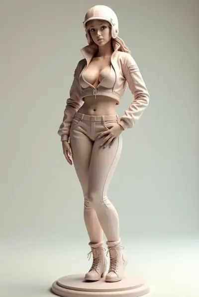 This model portrays a motorcyclist, featuring sleek lines and detailed clothing accessories, including a helmet and riding gear. The design is focused on achieving a balance between realism and artistic expression.
