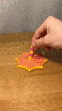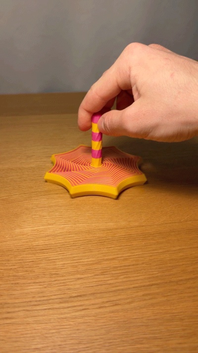 The combination of flexible geometry and a central grip results in a more engaging interaction compared to typical flat fidgets.