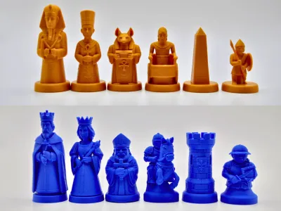 This Ancient Egyptian chess set draws inspiration from the grandeur of the Nile civilization, featuring pharaohs, queens, priests, and deities adorned with iconic headdresses and sacred symbols. Each piece reflects the mysticism and architectural legacy of Egypt, blending regal authority, spirituality, and timeless design into a cohesive set.