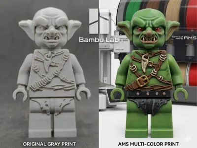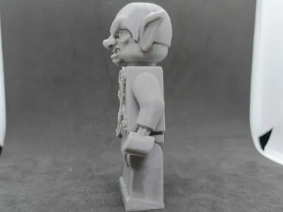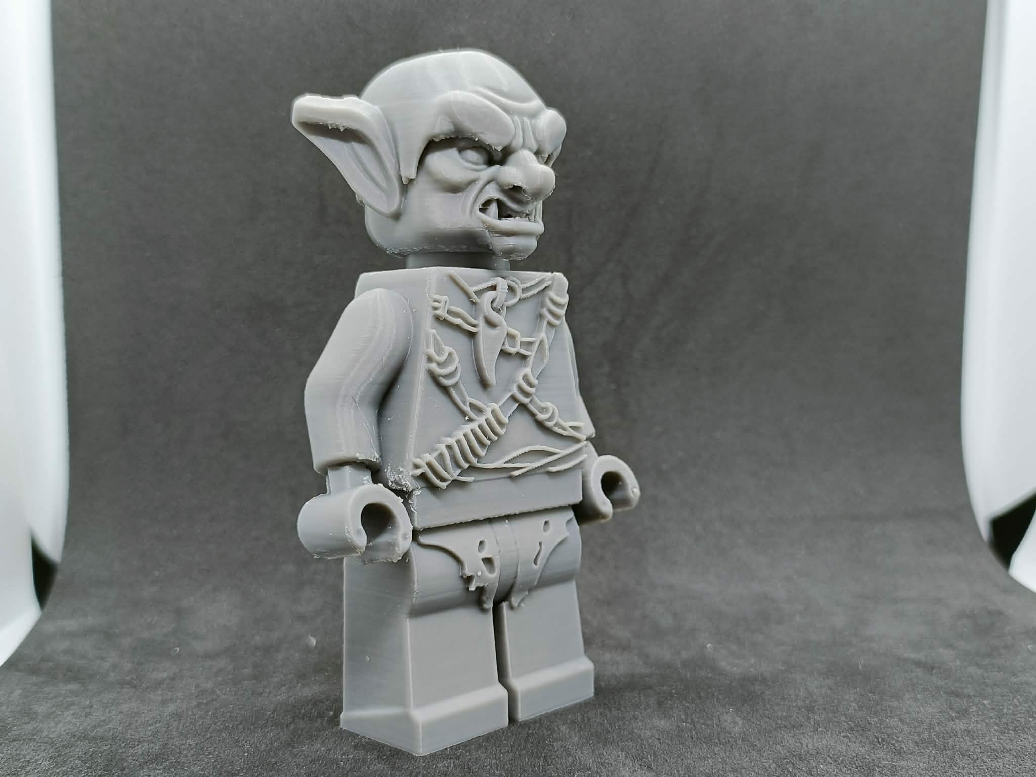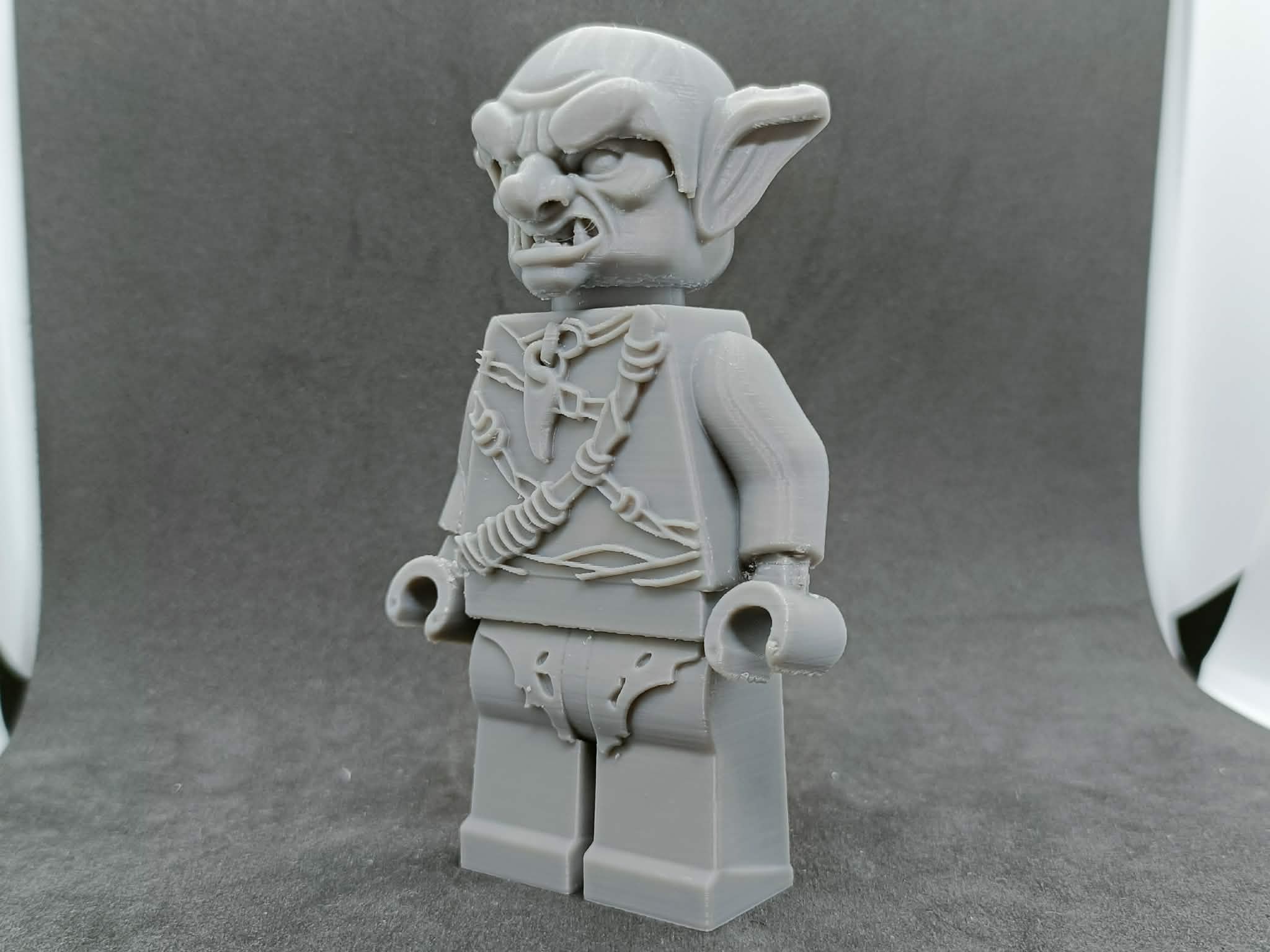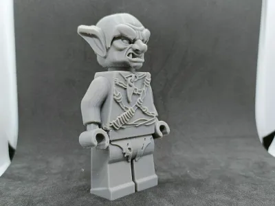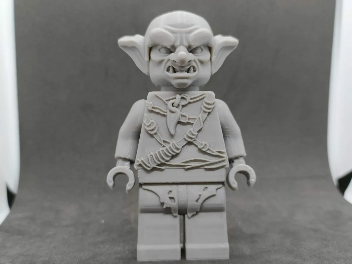 Bring a touch of Middle-earth to your brick collection with this high-detail fanart 3D model. This figurine is a unique blend of the iconic LEGOS-style aesthetic and the menacing, hyper-detailed features of a Goblin inspired by The Lord of the Rings.