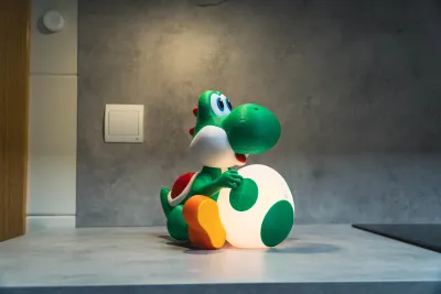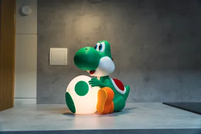 A multicolor split model inspired by a popular Yoshi-style popcorn holder. It’s designed to be very easy to assemble and its head and feet can articulate. The egg mechanism is still a work in progress and needs further testing and refinement, especially around the opening system. An alternative version with magnets has also been developed, allowing the egg to attach securely to the figure. This version can double as a small lamp or be used to hold items like pistachios or peanuts.