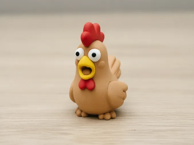 The rooster motif inherently embodies the symbolic meanings of “announcing the dawn, auspiciousness, and vitality.” Paired with a cute, chibi-style design, it is perfectly suited as a desktop ornament, workstation decoration, or festive prop for occasions such as the Spring Festival. Its rounded, plump body, combined with an exaggeratedly large comb, an open beak that seems to be crowing or shouting, and short wings and claws, beautifully captures the endearing charm and energetic spirit of a cartoon character.
