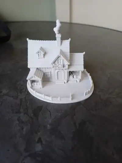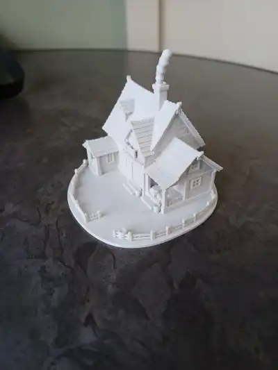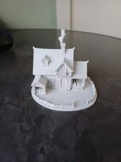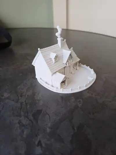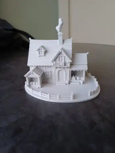 Bring the charm of countryside living into your home with this Cozy Farmhouse miniature. This highly detailed farm house features a fenced yard, stacked firewood, a covered storage area, and a chimney with smoke for a warm, lived-in feel.