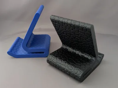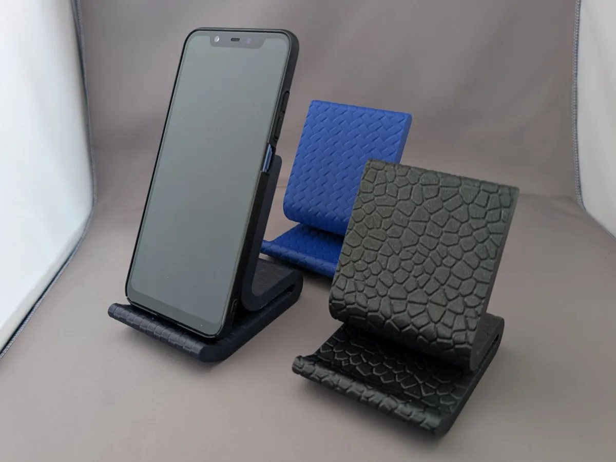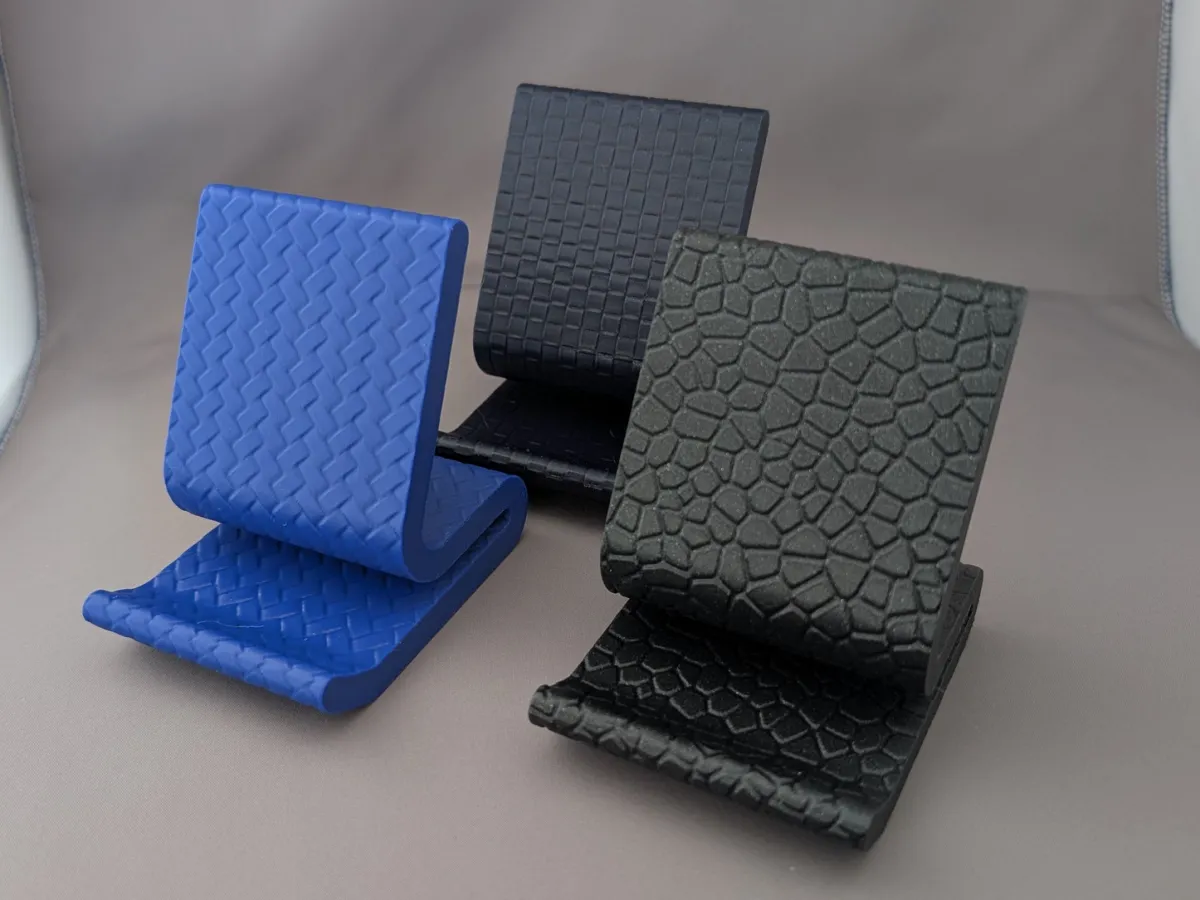 Phonestand to hold your phone in three different textures: voronoi, weave and basket. Can fit most phones.