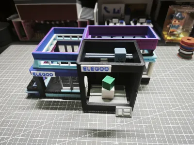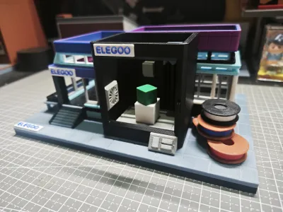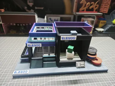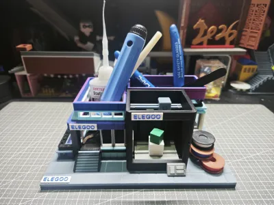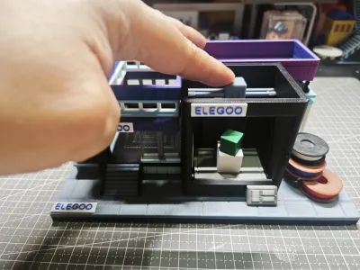 - 🎨 Attention to detail down to the last inch! The ELEGOO logo on the building façade and the miniature filament-reel scene seamlessly blend brand elements with a futuristic industrial style, making this not just a storage box but also a trendy desktop display piece.