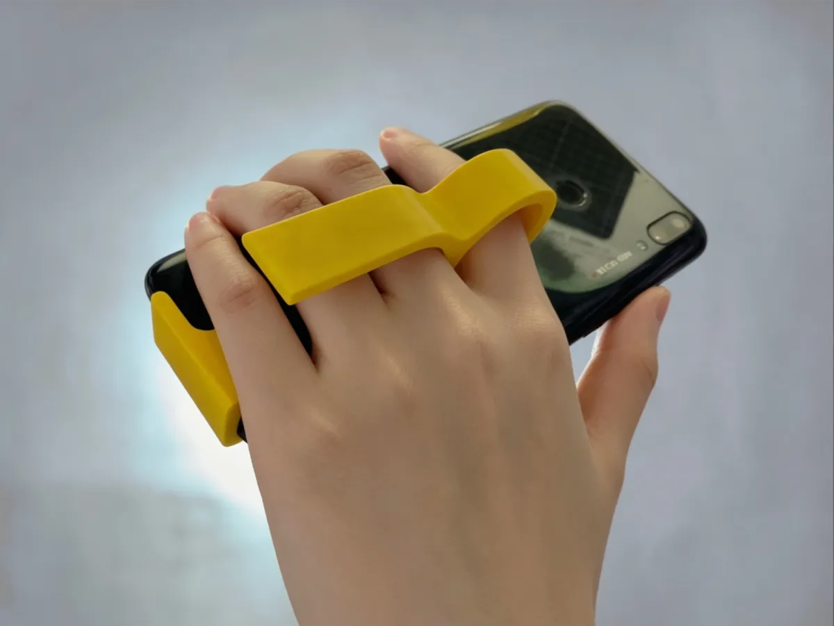 A non-slip handheld grip for smartphones, featuring a wrap-around, close-fitting design that accommodates most phone bodies. When worn on the back of the hand, it provides a stable hold, evenly distributing the force exerted by holding the phone with one hand to prevent it from slipping. This effectively reduces hand fatigue during prolonged activities such as scrolling through videos, taking photos, or playing mobile games. Its lightweight, integrated design makes it convenient for everyday use, offering both protection and a comfortable gripping experience.