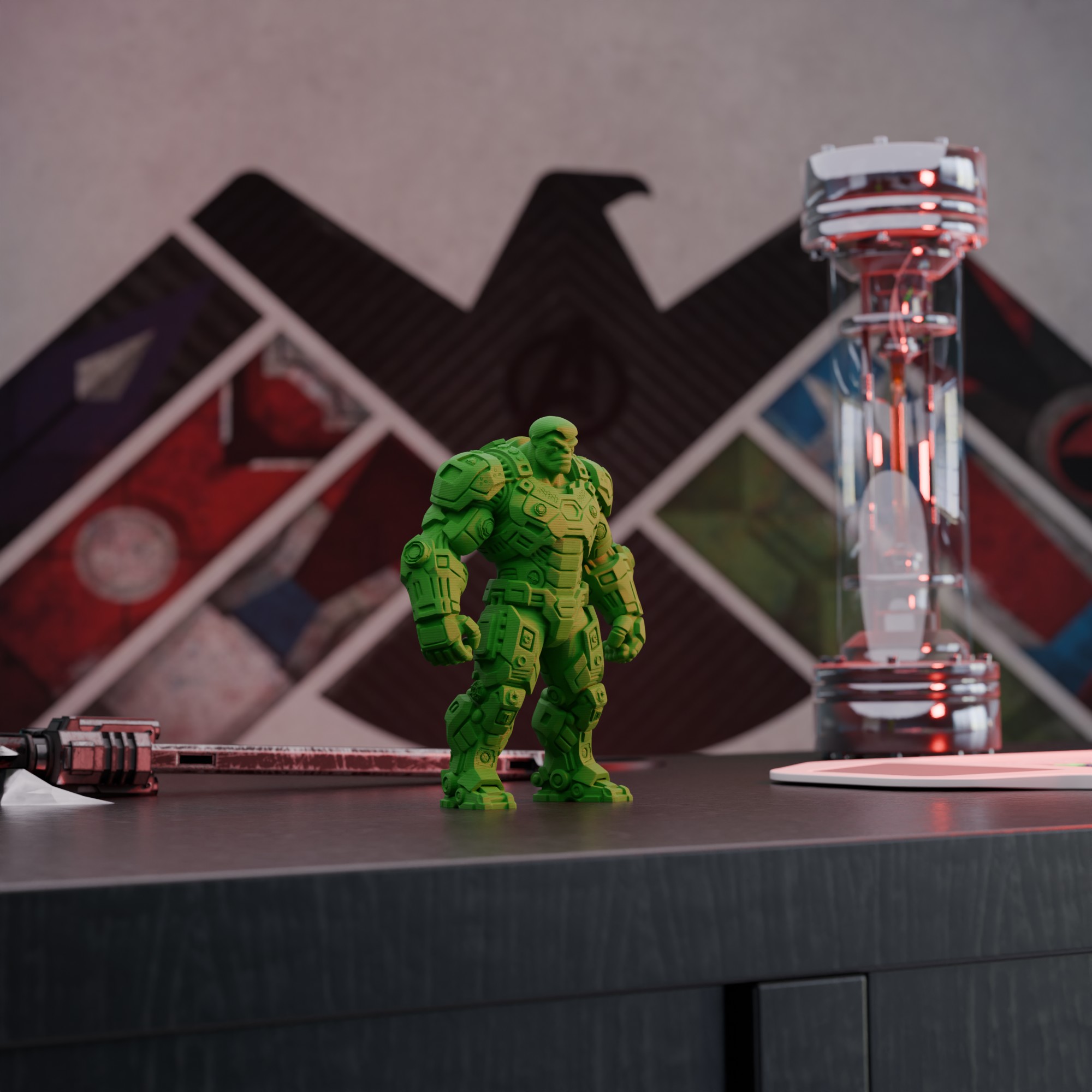 Mecha Hulk – A powerhouse reimagined as a towering mechanical beast. This design captures the raw strength and presence of the Hulk, but rebuilt in heavy armored plating, reinforced pistons, and oversized limbs built for destruction.