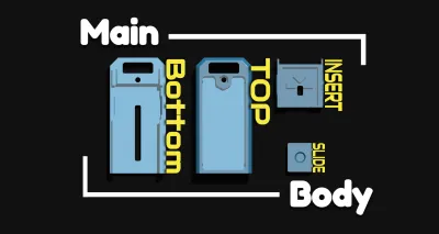 Once you have all your printed parts, take the bottom of the slider and the Key insert of your choice, and push the insert into the back of the sliding mechanism (you will have to push hard), next take your key and insert into the insert, slide the top of the key slider onto the bottom of the key slider from back to font, (optional m3x10 countersunk screw and nut can be utilized in with the holes provided, this will also depend on your filament tolerance's) take your slider and insert into the back of the bottom piece making sure it connects into the key insert. finally snap your cover into place and your ready to go!