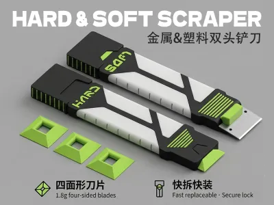 ②Wide Applicability: One end features a plastic blade, ideal for everyday glue removal and scraping models from moderately sticky print beds without damaging the surface; the other end is a sharp metal blade, perfect for more stubbornly adherent models.