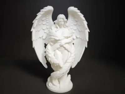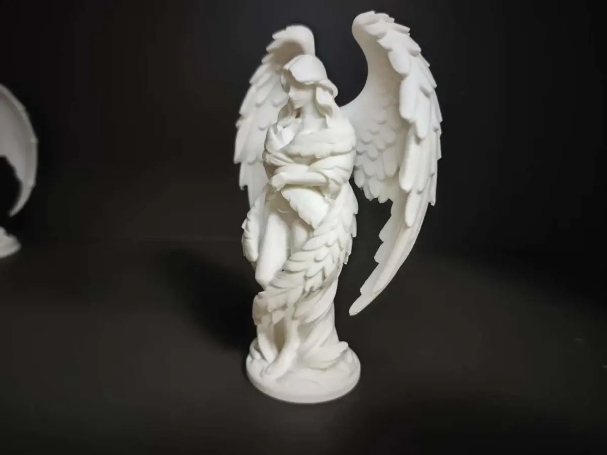 - Lower Body and Base: The legs are elegantly draped in feather‑like fabric that cascades naturally down to a rounded base, which features a refined, swirling vine motif. This design not only ensures a stable center of gravity but also harmoniously complements the piece’s overarching theme of graceful, otherworldly beauty.