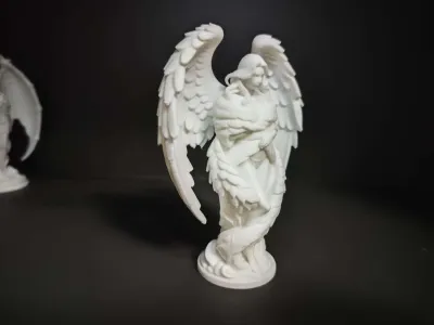 - Wing Design: A pair of expansive wings unfurl behind her, each feather meticulously layered and richly textured, radiating outward from the shoulders. The intricate detailing not only enhances the figure’s divine presence but also imbues the overall composition with dynamic tension and visual impact.
