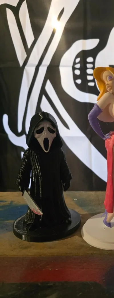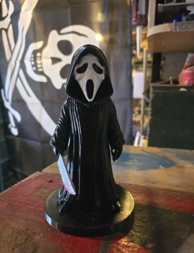 The Ghostface model draws inspiration from the iconic horror film series featuring this mysterious and terrifying character. The design captures the essence of fear with its distinctive arm pose and menacing demeanor, making it a must-have for horror enthusiasts.