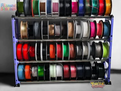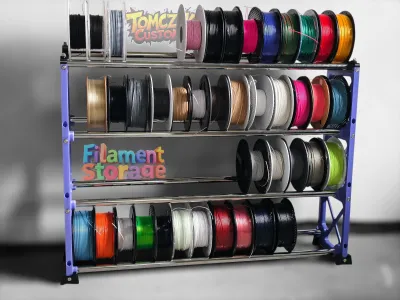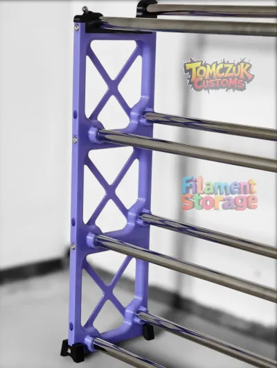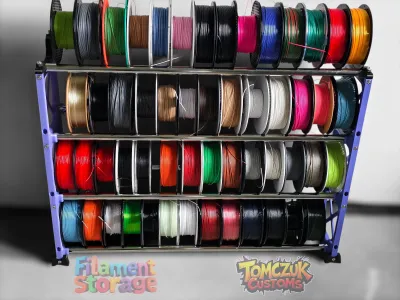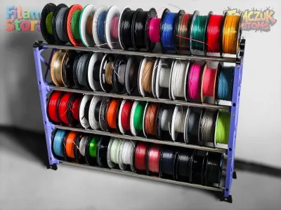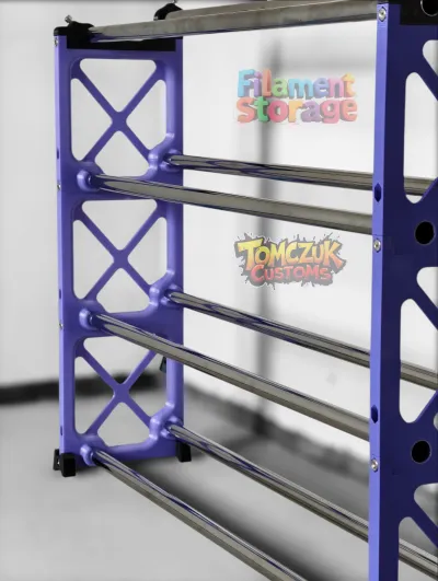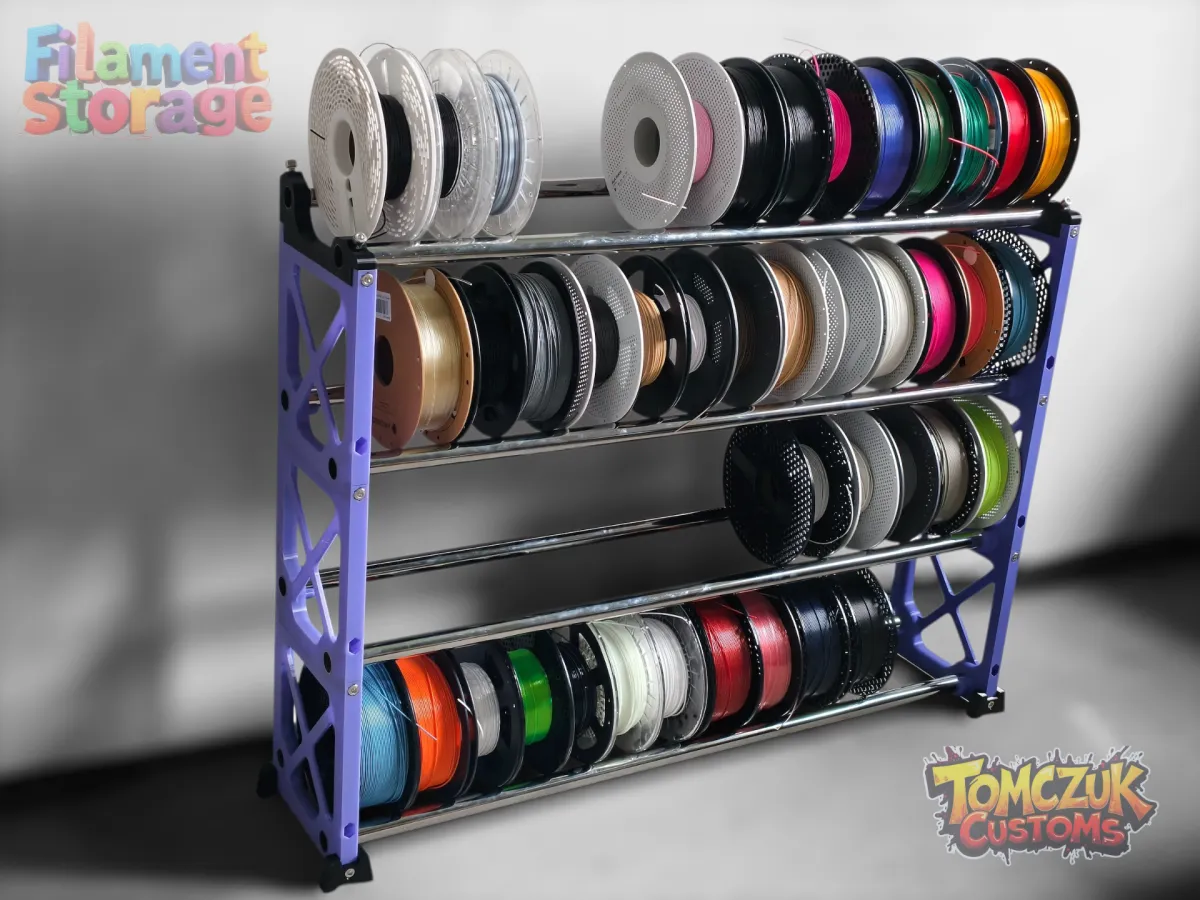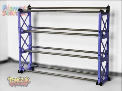 Holds 14 standard 1 kg spools per levelUses cheap 25 mm chrome furniture tubes (I used 1 m length)Tubes are easy to find and usually cost below 2 USD eachMinimum print bed size: 250 × 250 mmSturdy construction with M8x20 socket head screws (Allen)Clean, simple look that works in a workshop or living room cornerYou can build a compact stand or extend it by adding more levels
