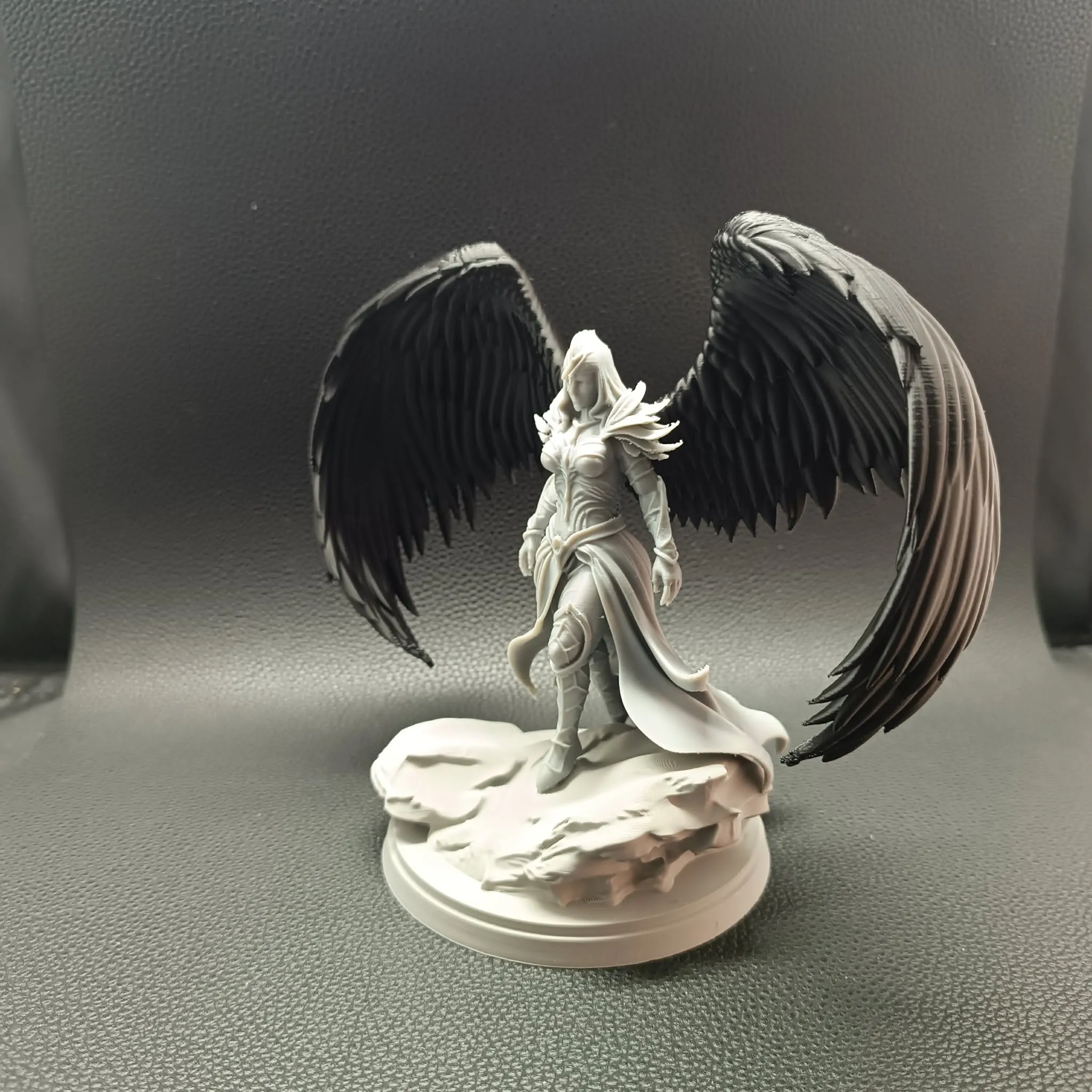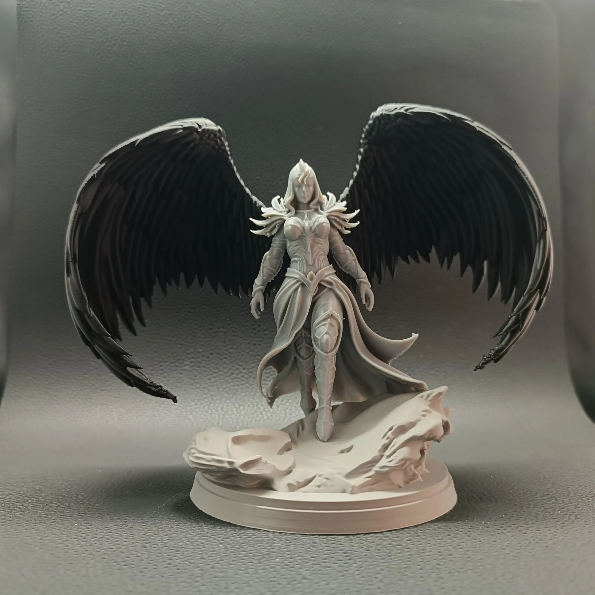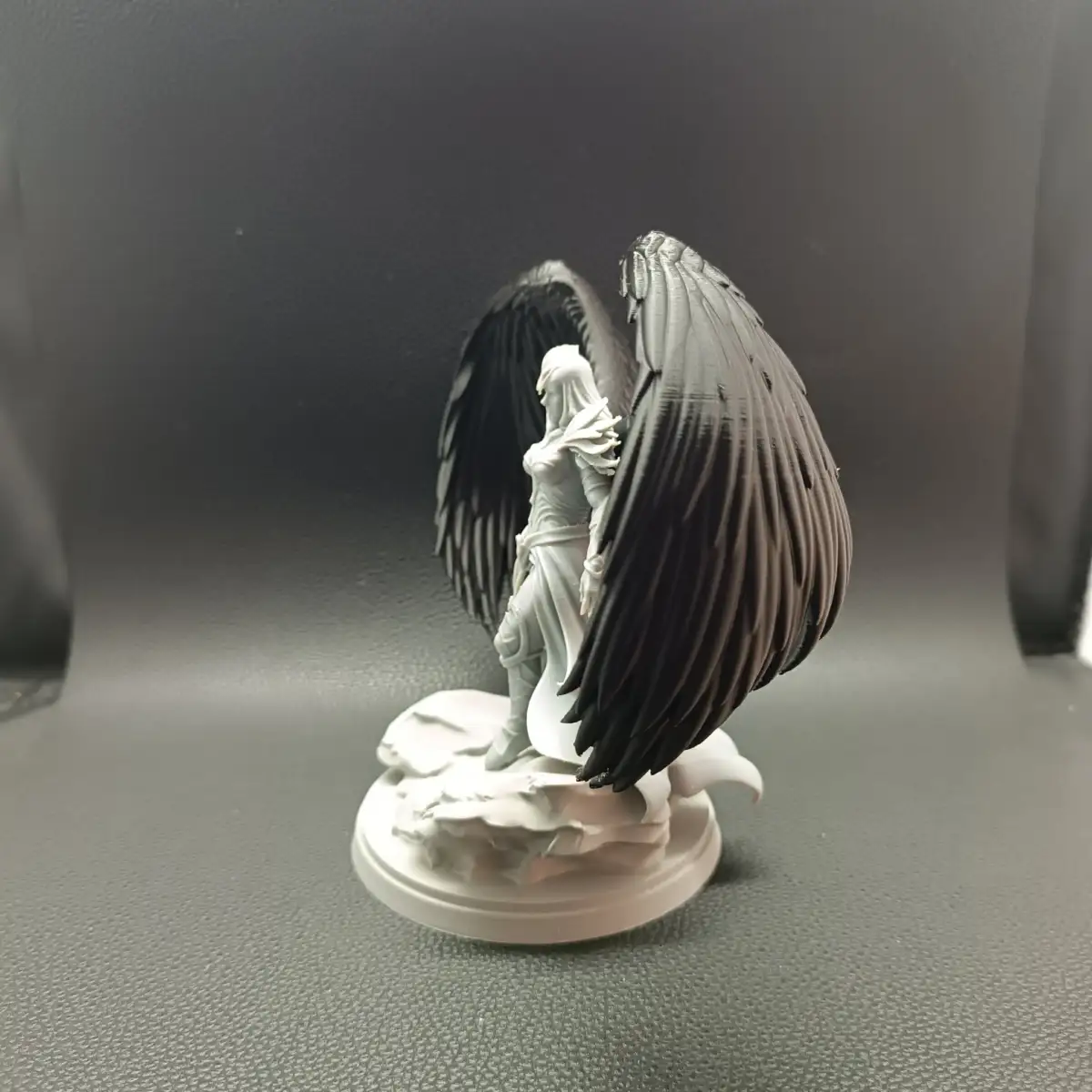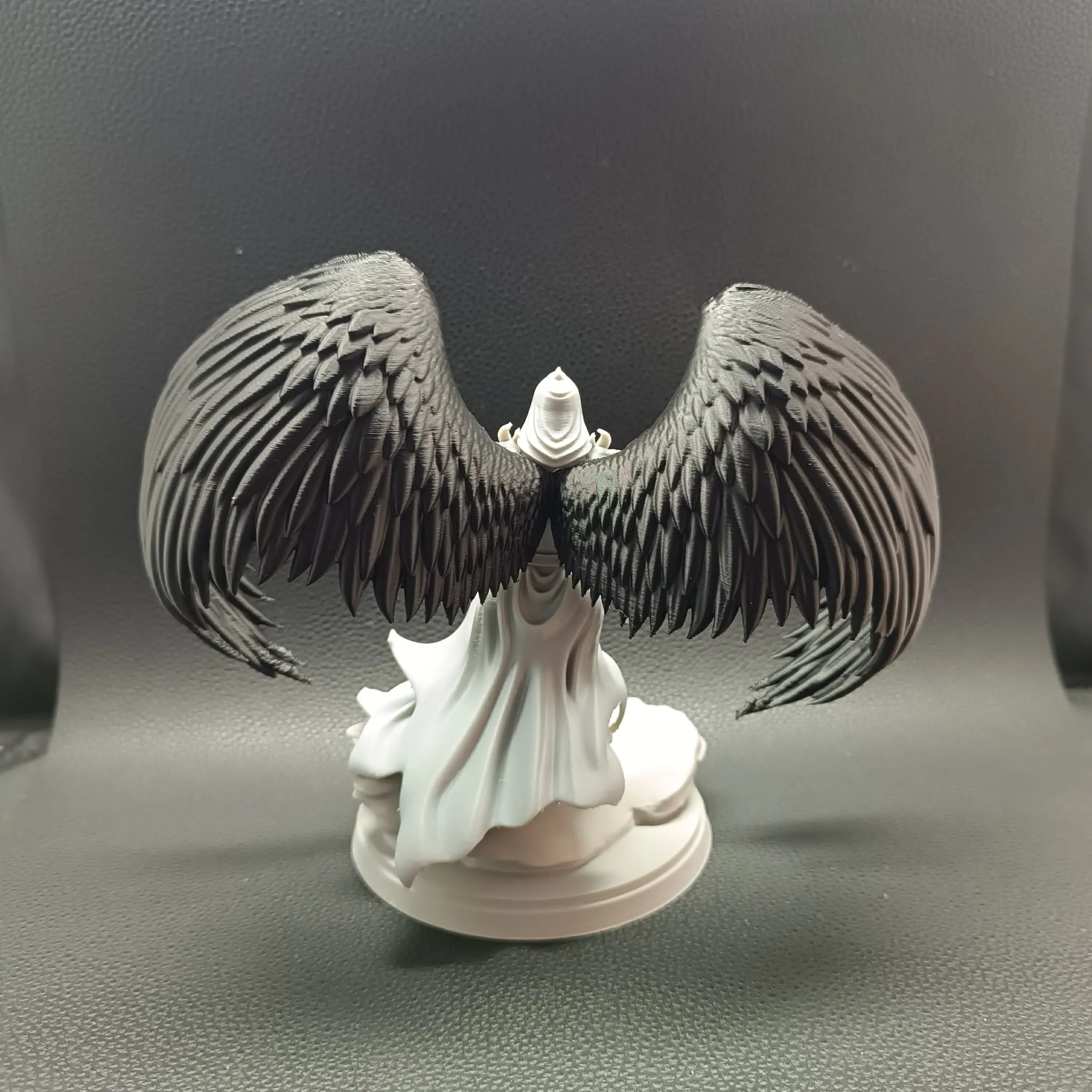 After printing, all elements require gluing to assemble the final statue. Once completed, the figure forms a powerful, cohesive composition — the angel stepping forward upon a sculpted base, wings unfurled as if mid-descent.