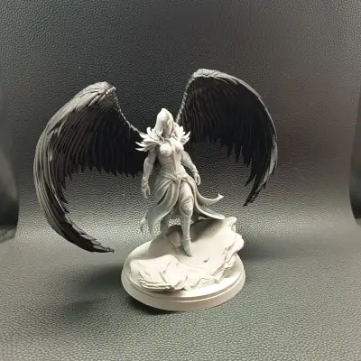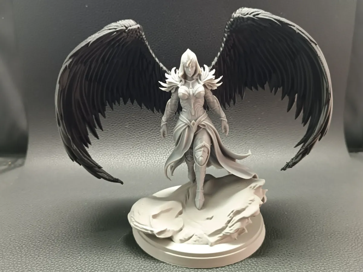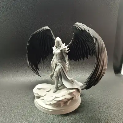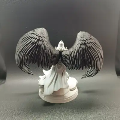 the wings, the angelic figure, and the base. This modular structure allows advanced customization — each element can be printed in different colors or materials, emphasizing contrast between light and shadow, flesh and steel, divinity and war.