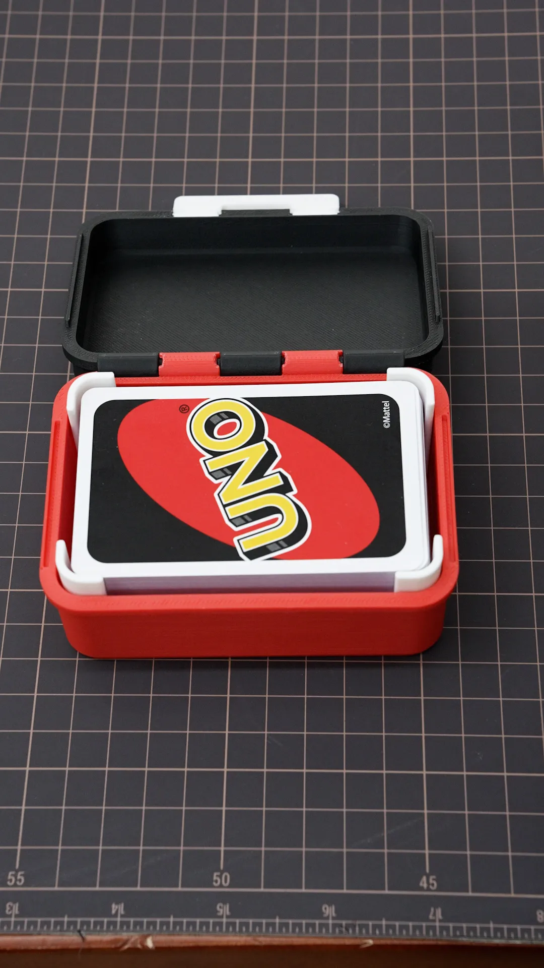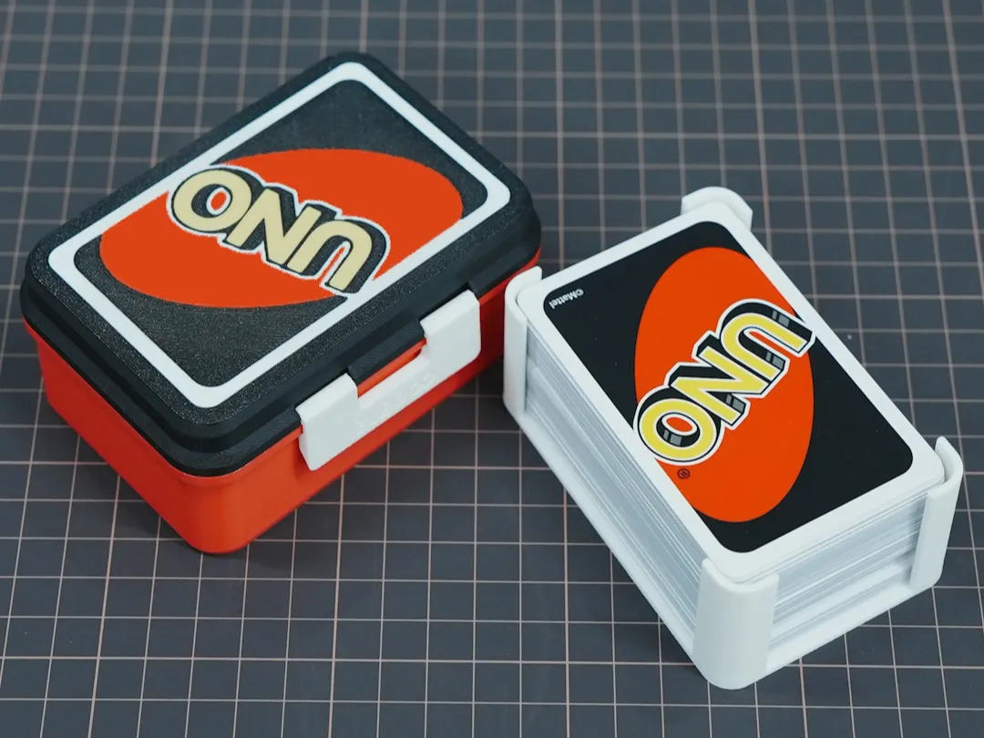 A simple and practical UNO card storage box designed to neatly hold your UNO cards. It keeps cards organized, protected, and easy to carry around.
