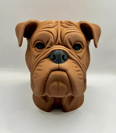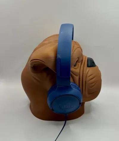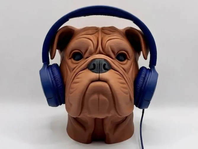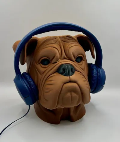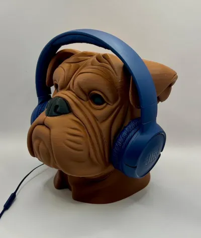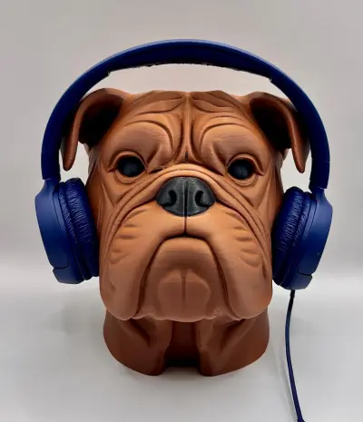 An impressive and practical 3D-printed bulldog bust that doubles as a headphone stand. The detailed wrinkles, loyal expression, and solid build make it the ultimate accessory for gamers, music lovers, or anyone who appreciates unique design in their workspace.