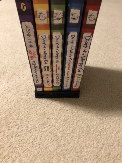 This model is a holder for five of the diary of a wimpy kid series books. It requires no supports and holds the books snug together. In a stylish way.
