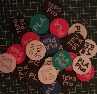 Filament anti-tangle system with RFID token: insert an NFC215-type NFC self-adhesive tag inside the token. This token can then be programmed using an Android smartphone via a dedicated app, such as “Filament RFID.” This method enables digital information to be linked to the filament, thereby simplifying its identification and use.