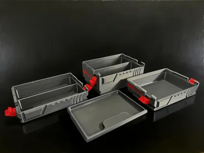 This is a push-pull stacking toolbox that I have carefully designed. The appearance is in a mecha style, can be stacked infinitely, and is snap-locked. It has various internal heights in specifications: 30cm, 60cm, 90cm, 120cm, and 150cm. At the same time, it also designs an editable internal partition to achieve a customized layout of the interior space. This model adopts a unsupported design and eliminates the need for multi-color printing equipment. I hope everyone can like and support it.