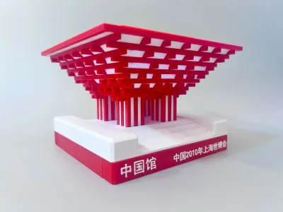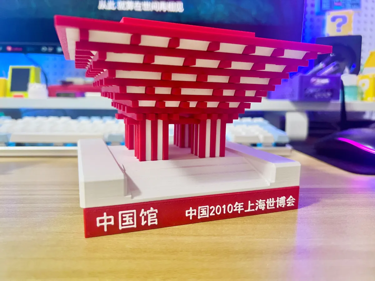 Based on the iconic China Pavilion from the 2010 Shanghai World Expo, this model faithfully reproduces the signature silhouette of the “Crown of the East.”