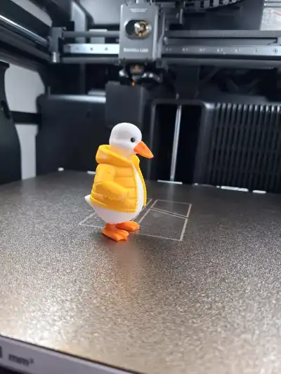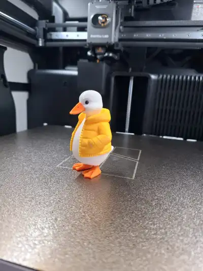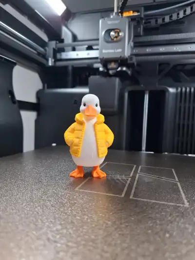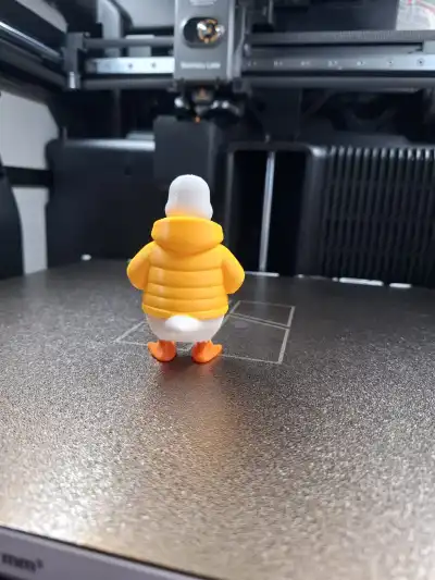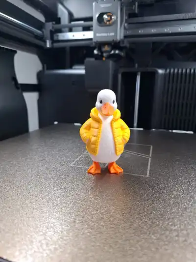 Puff Jacket Duckling is a charming little duck with a big personality, dressed in a cozy puffer jacket that makes it look ready for a crisp winter stroll.
